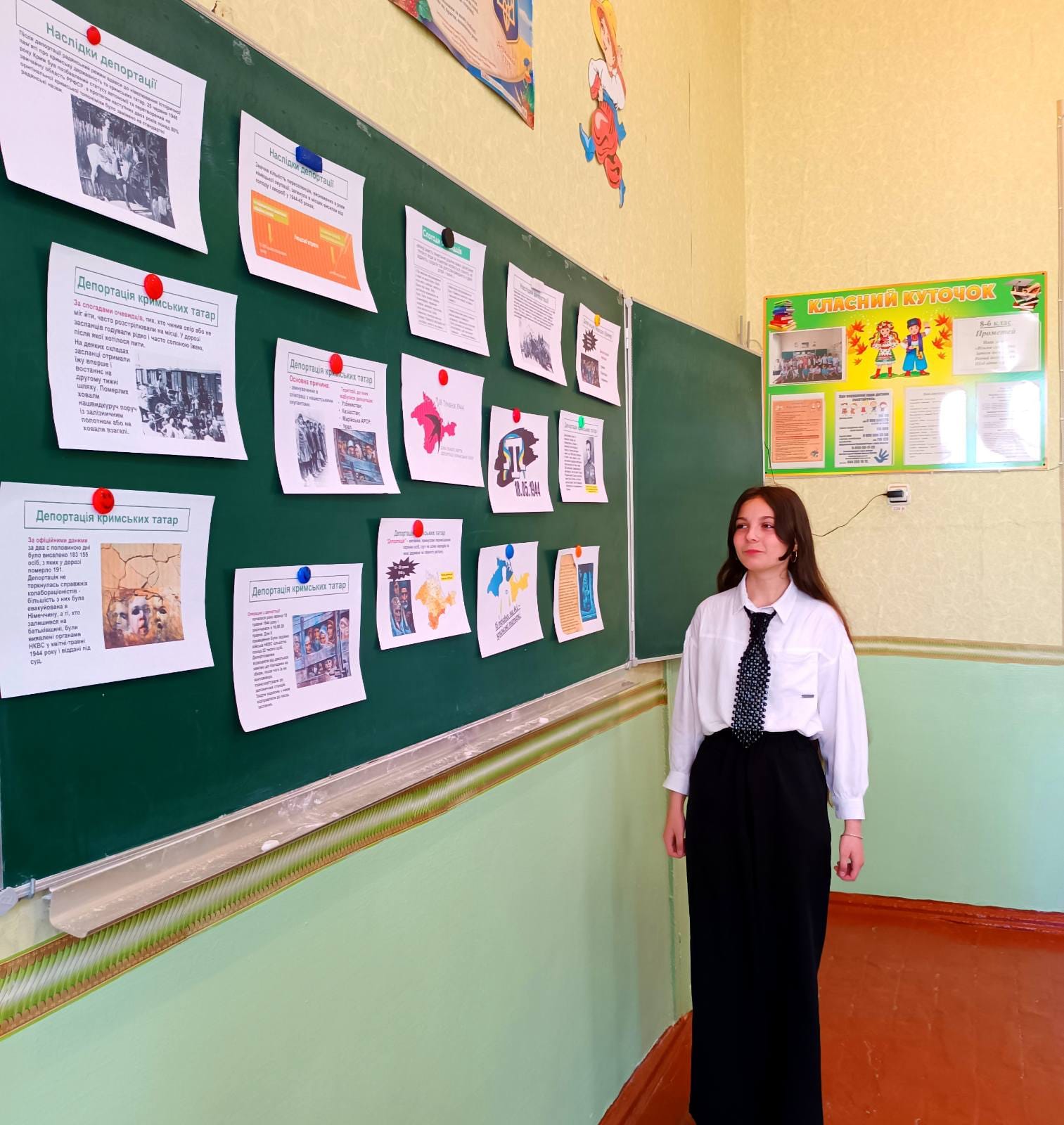 Саме про ці трагічні події історії кримськотатарського народу йшлося на виховній годині у 8-б класі. Здобувачі освіти зачитували свідчення осіб, які пережили депортацію, обговорили наслідки депортації, а також процес повернення кримських татар на історичну батьківщину на початку 1990-х років.